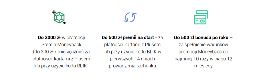 Zyskaj kolejne 500 zł po 12 miesiącach korzystania z rachunku. Premię otrzymasz, jeśli w tym czasie co najmniej 10 razy spełnisz warunki promocji Moneyback (min. 2000 zł płatności bezgotówkowych w miesiącu oraz min. 1 przelew do ZUS).